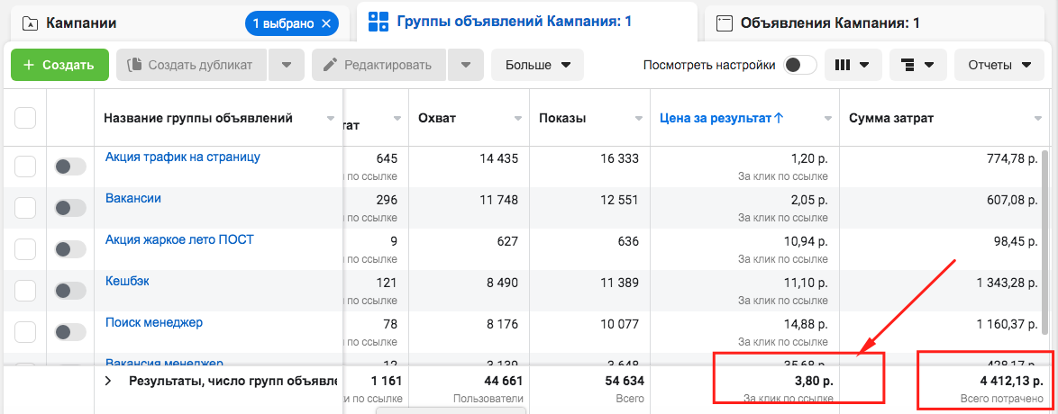Результаты: Получен 1 161 лид (3,8 руб. / лид)